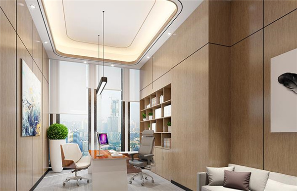 1、對于辦公面積并不算充裕的董事長的辦公室來說,辦公室裝修使用北歐風(fēng)格可以帶去更加輕松又清爽的辦公環(huán)境,氛圍也較為自然流暢,淡藍色涂料裝飾面覆蓋墻面以后視覺效果也很不錯,尤其是與麻布沙發(fā)和原木色辦公家具相互搭配更加顯得相得益彰。與北歐風(fēng)格不同之處在于,輕奢風(fēng)辦公室裝修風(fēng)格更加適合有身份和地位的董事長,從細(xì)節(jié)再到內(nèi)涵的表達和釋放都無處不顯尊貴氣息,玫瑰金鈦金條與墻面硬包組合之后令整體背景墻裝修效果滿滿。